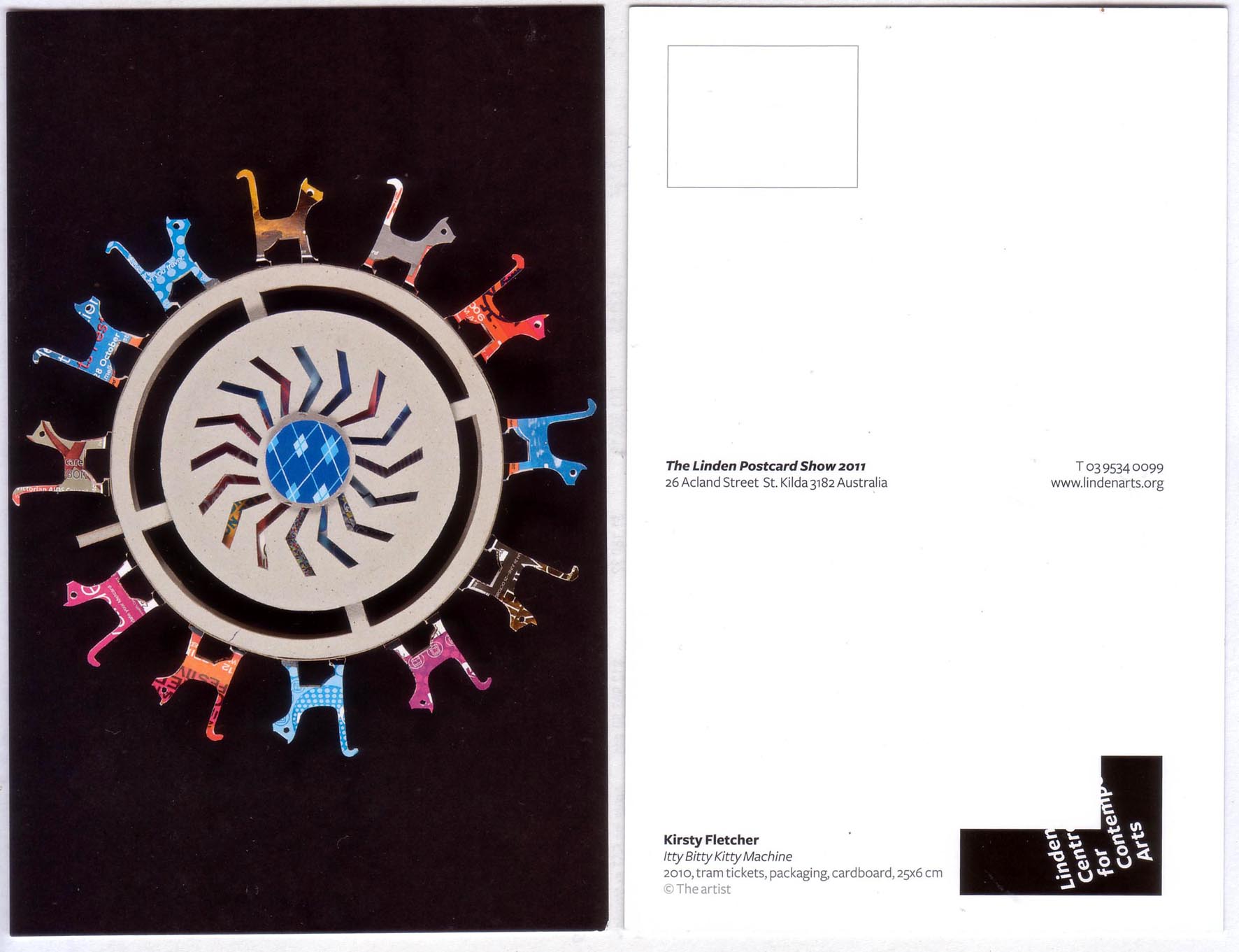 The prizes were also announced and I am very proud to report that my ‘itty bitty kitty machine‘ was awarded one of the 6 postcard awards. Expect to see tiny kittens made from metcards on postcards across Melbourne later this year. I will recieve 100, so if you are not in Melbourne (or want to make sure you get one) let me know and I will mail them once they are printed.