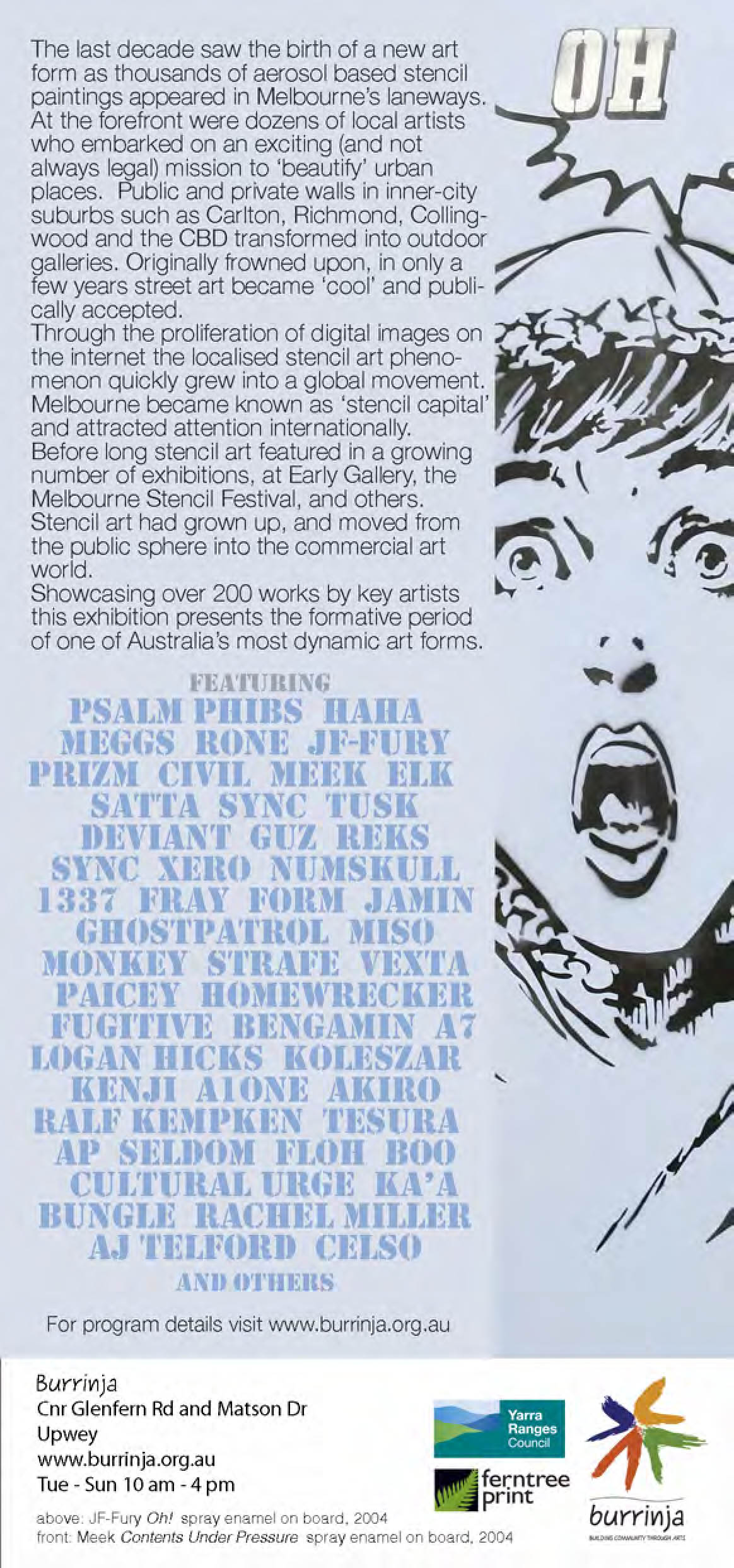 Have been quiet recently with the birth of my first child and my studio still not inhabitable since I moved rooms. So, as an apology here is an invite to a great stencil exhibition in Upwey. Great excuse for a trip out of the city.