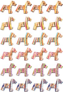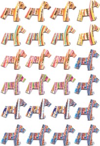 Made from Melbourne tram tickets, this design is based on Wanda Gag’s ‘Millions of Cats’ book and my Itty Bitty Kitty Machine artwork (seen here and here).