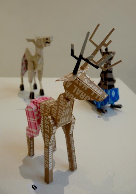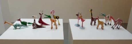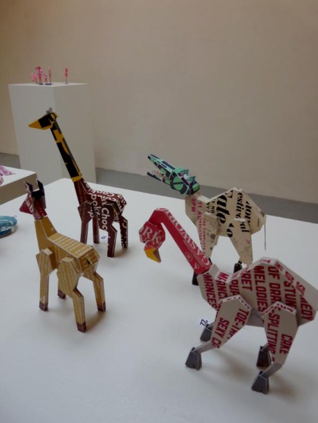 Centered on a mix ‘n’ match Noah’s Ark procession, Kirsty Fletcher’s new exhibition is a mutant safari of cardboard creatures inspired by current fashion trends and crafty DIY projects involving children’s toys.